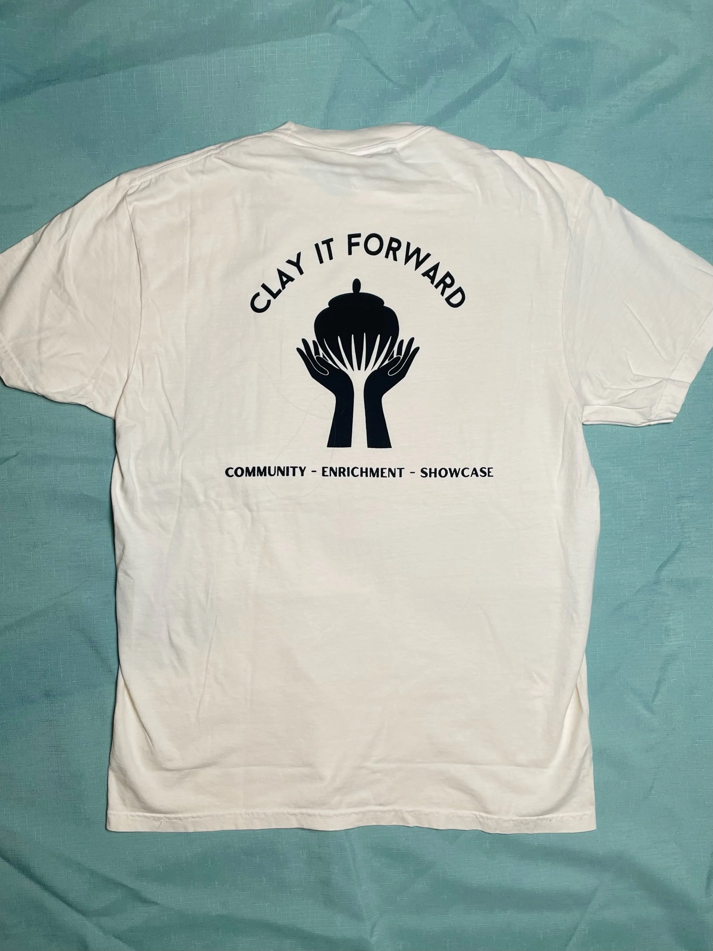 Color is tan with the CCCG logo on the front and Clay it Forward design on the back.